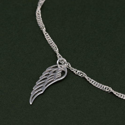 Sterling Silver 10" Singapore Chain Anklet With Wing Pendant