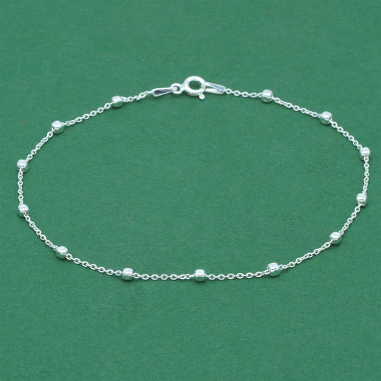 925 Sterling Silver Anchor Trace Beaded Cube Anklet, Satellite Chain Silver Anklet, Minimalist Dainty Everyday Foot Jewellery