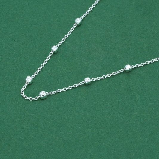925 Sterling Silver Anchor Trace Beaded Cube Necklace, Satellite Chain Silver Necklace, Minimalist Dainty Everyday Layering Jewellery