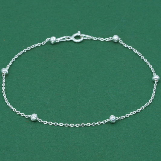 925 Sterling Silver Diamond Cut Beaded Anklet, Satellite Chain Silver Anklet, Minimalist Layering Everyday Foot Jewellery