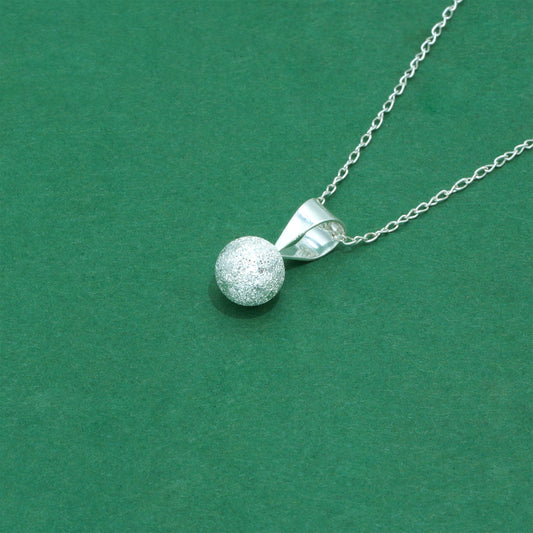 925 Sterling Silver Trace Cable Chain with Frosted Ball Pendant Necklace, Minimalist Sphere Jewellery, Gift for Her, Birthday Gift, Anniversary Gift