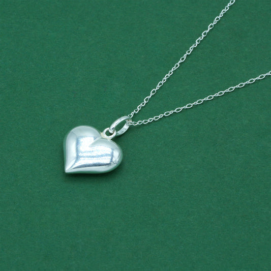 925 Sterling Silver Trace Cable Chain with Puffed Heart Pendant Necklace, Minimalist Romantic Jewellery for Her