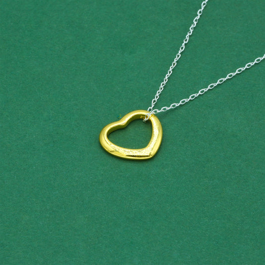 18k Flash Gold Plated Open Heart Pendant Necklace on Trace Cable Chain, Minimalist Romantic Jewellery for Her