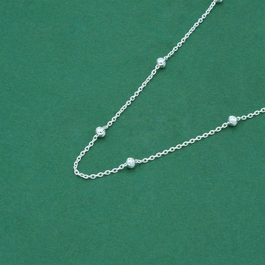 925 Sterling Silver Diamond Cut Beaded Necklace, Satellite Chain Silver Necklace, Minimalist Layering Everyday Jewellery