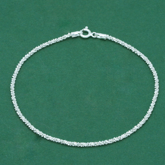 925 Sterling Silver Margherita Chain Anklet, Textured Sparkle Silver Anklet, Minimal Stacking Everyday Foot Jewellery
