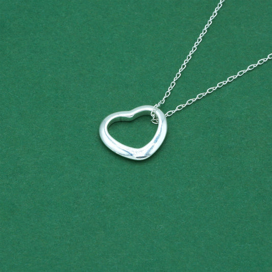 925 Sterling Silver Trace Cable Chain with Open Heart Pendant Necklace, Minimalist Romantic Jewellery for Her