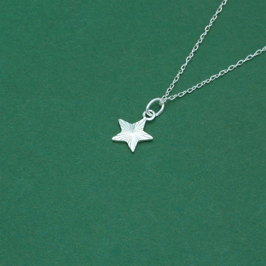 925 Sterling Silver Trace Cable Chain with Star Pendant Necklace, Minimalist Diamond Cut Star Jewellery