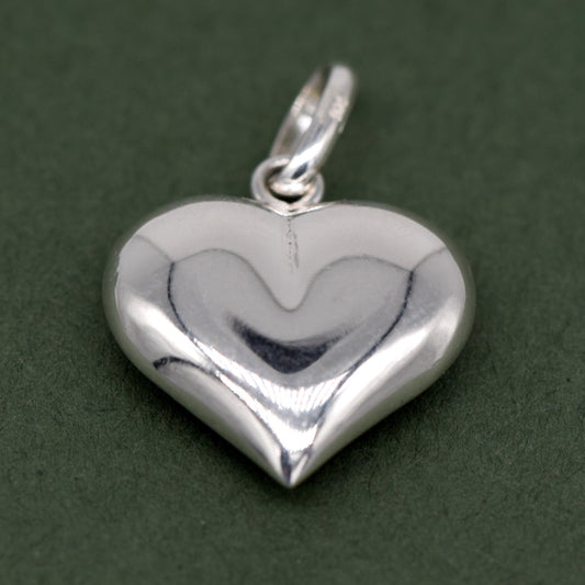 Sterling Silver Puffed Heart Charm with Lobster Clasp