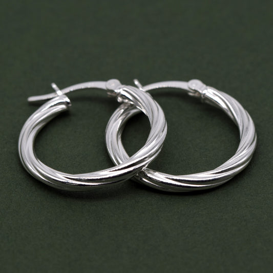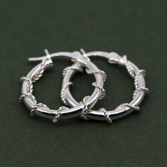 Sterling Silver 20mm Creole Style Twisted Wire Wrapped Hoop Earrings