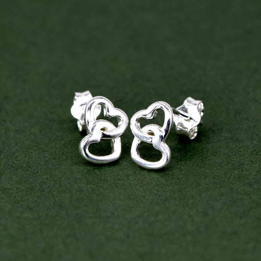 Sterling Silver Fluted Diamond Cut Double Heart Dropped Stud Earrings