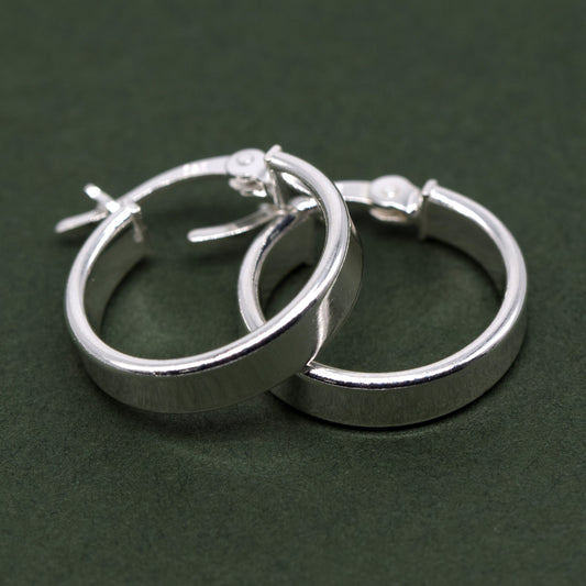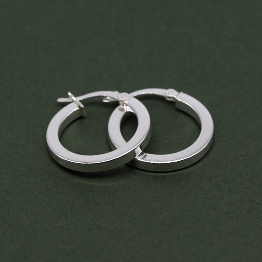 Sterling Silver Creole Style 15mm Flat Hoop Earrings