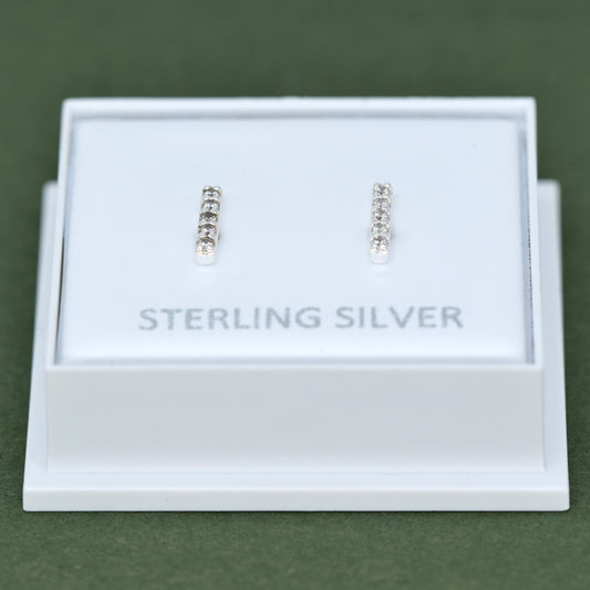 Sterling Silver 7.5mm Cubic Zirconia Bar Stud Earrings in Gift Box