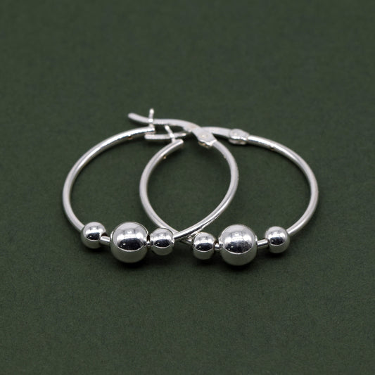 Sterling Silver Creole Style Beaded Hoop Earrings 25mm