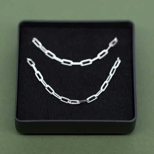 Sterling Silver 2.7mm Paperclip Chain Bracelet and Necklace Matching Set in Gift Box