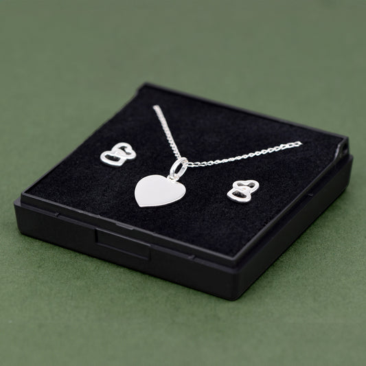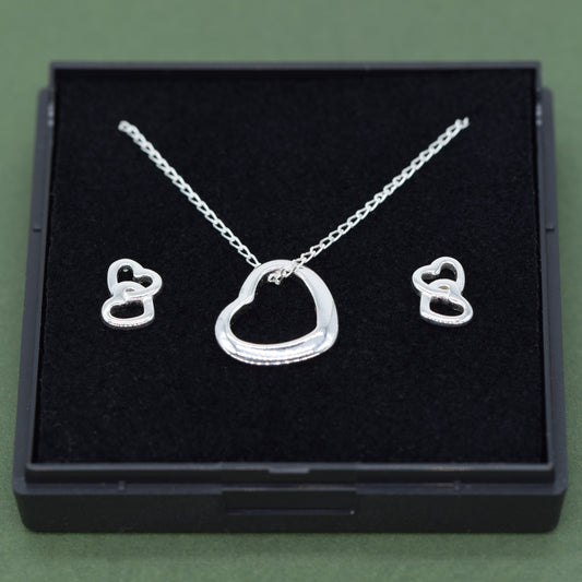 Sterling Silver Heart Necklace & Earrings Gift Set