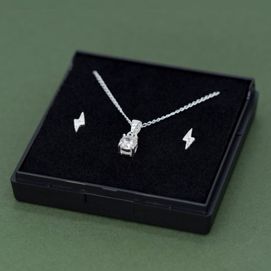 Sterling Silver Cubic Zircona Necklace & Bolt Earrings Gift Set