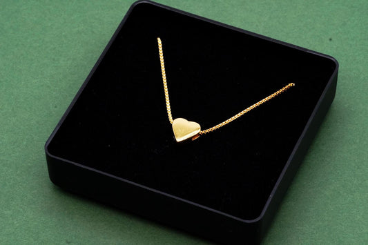 Gold Plated Sterling Silver Heart Charm Necklace with Gold CZ Bar Studs Gift Box