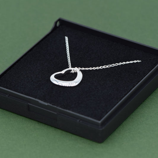 Sterling Silver Flat Heart Pendant Necklace in Gift Box