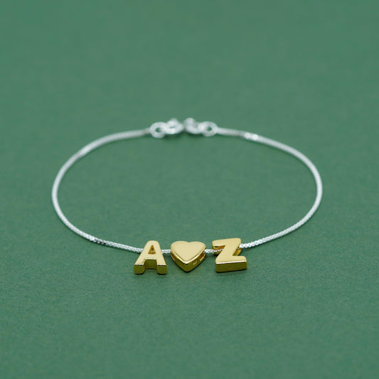 Gold Vermeil Sterling Silver Letter on Sterling Silver Box Bracelet