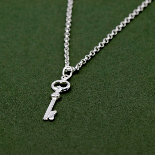 Sterling Silver Key Pendant Necklace on Rolo Chain