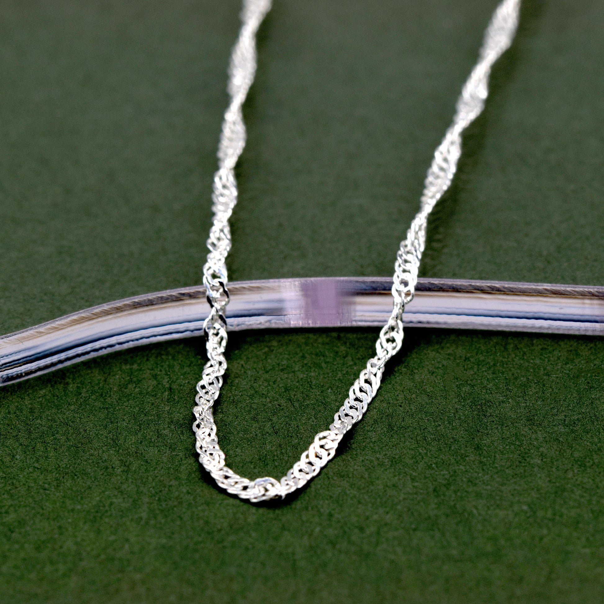 Sterling Silver 1.8mm Twisted Curb Singapore Chain Necklace