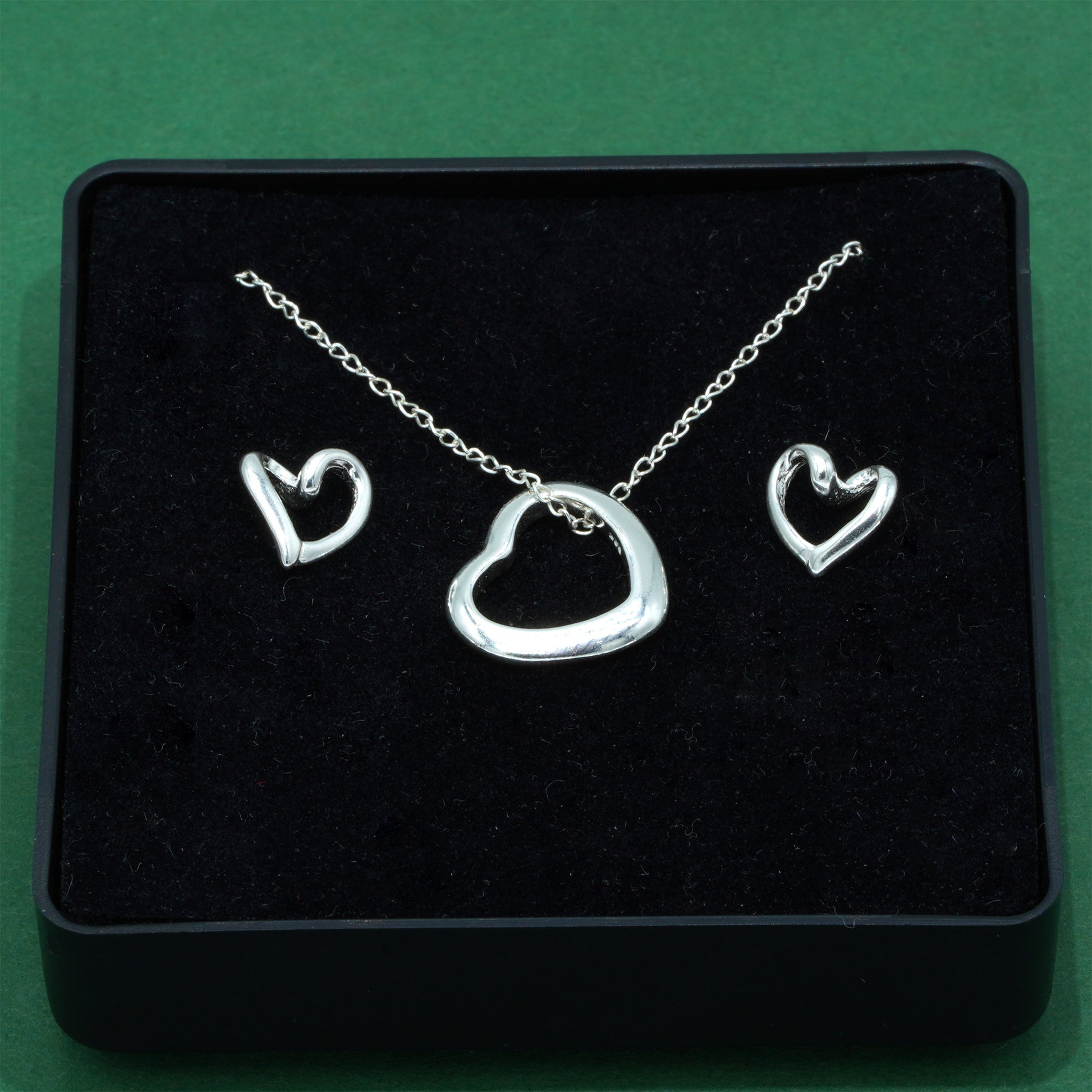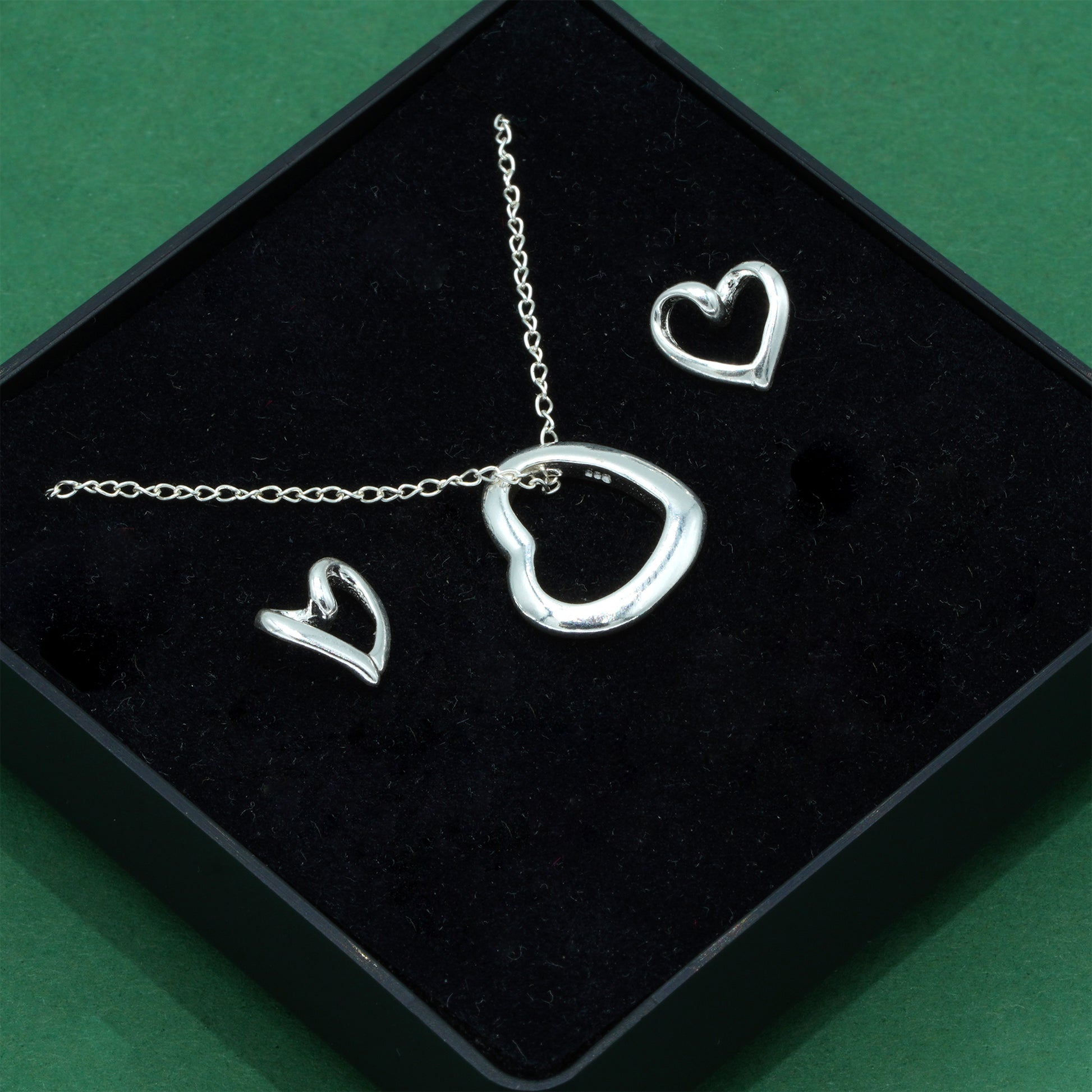 This elegant jewellery set features a beautifully polished open heart pendant necklace paired with delicate open heart stud earrings, all crafted from 925 sterling silver. The soft curves and clean finish create a modern yet timeless romantic look.