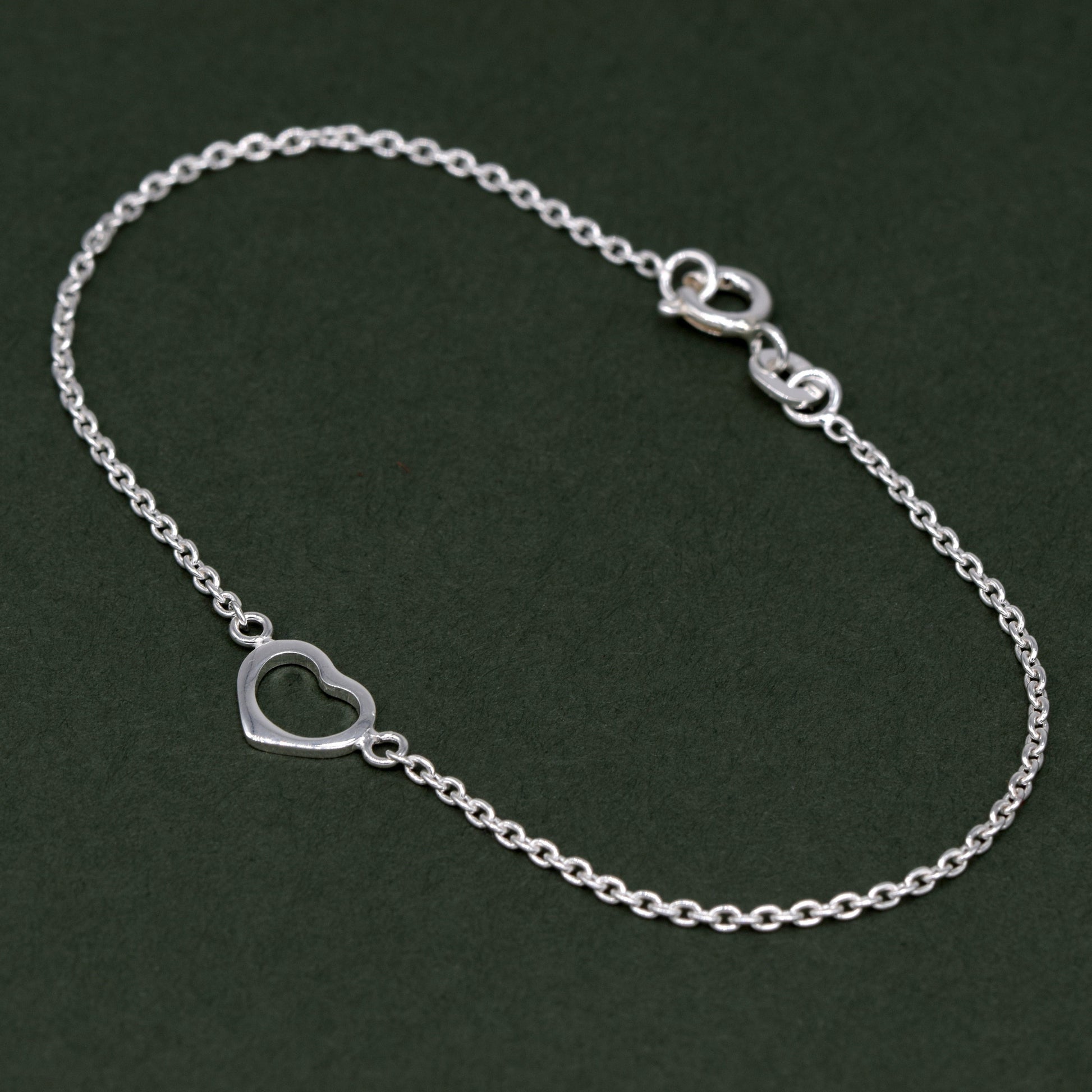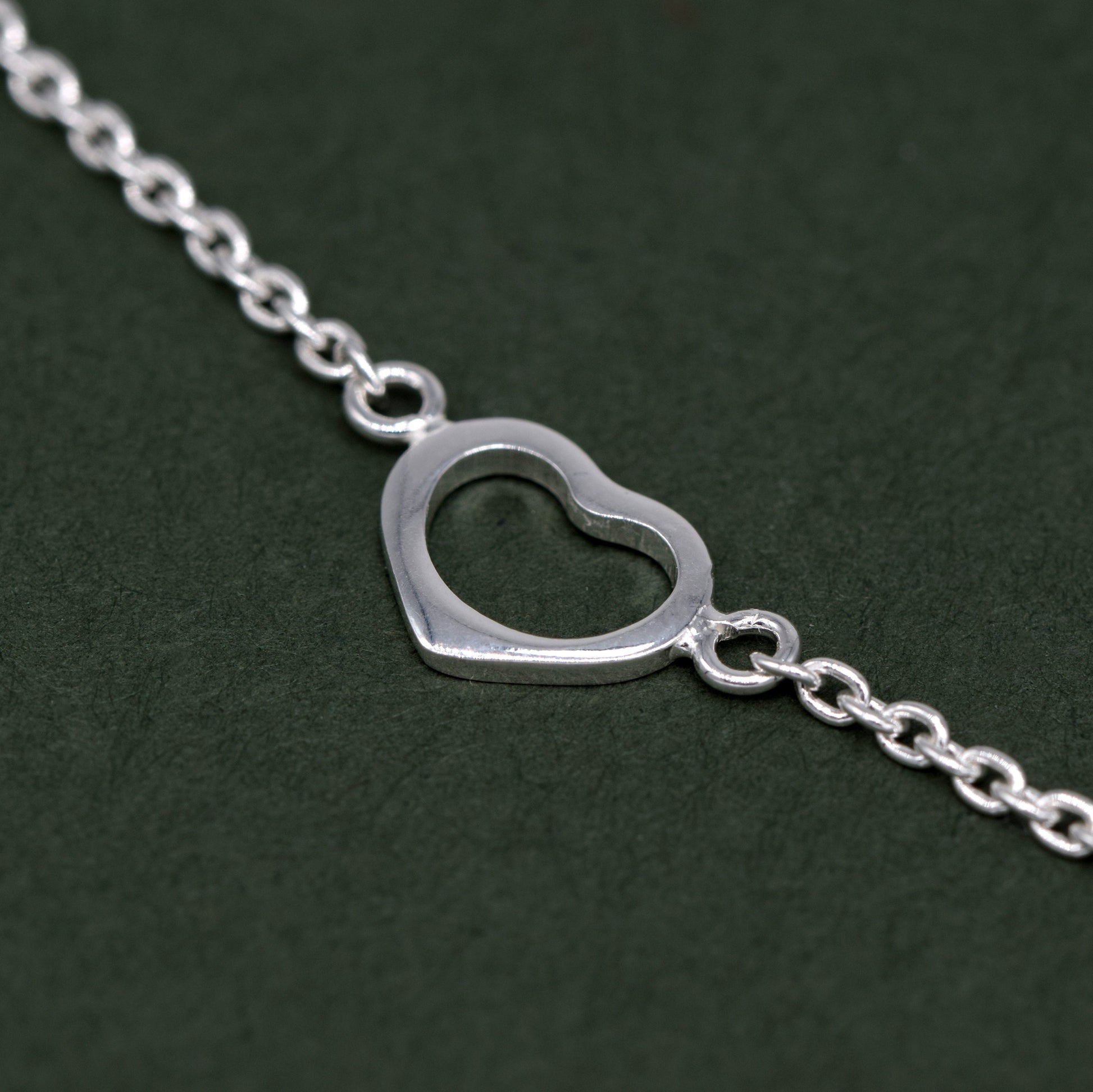 Sterling Silver 10" Open Heart Rolo Chain Anklet