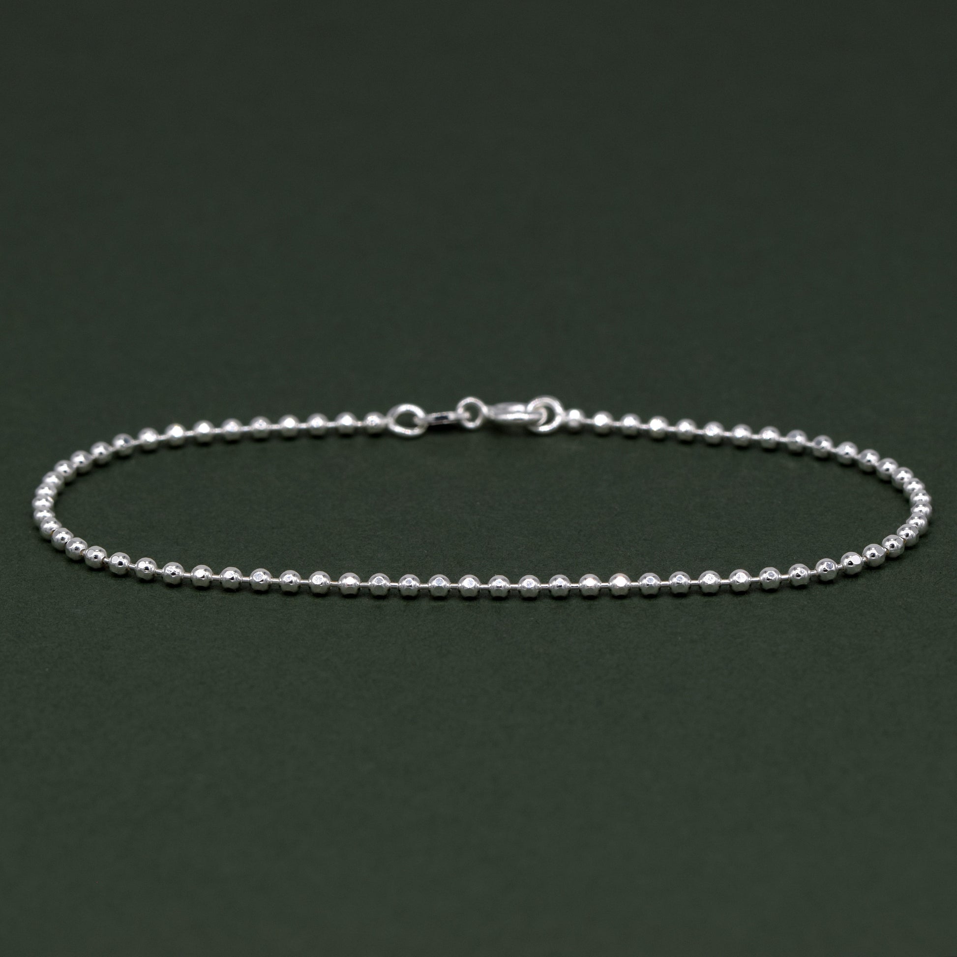 Sterling Silver 2mm Diamond Cut Ball Bead Bracelet