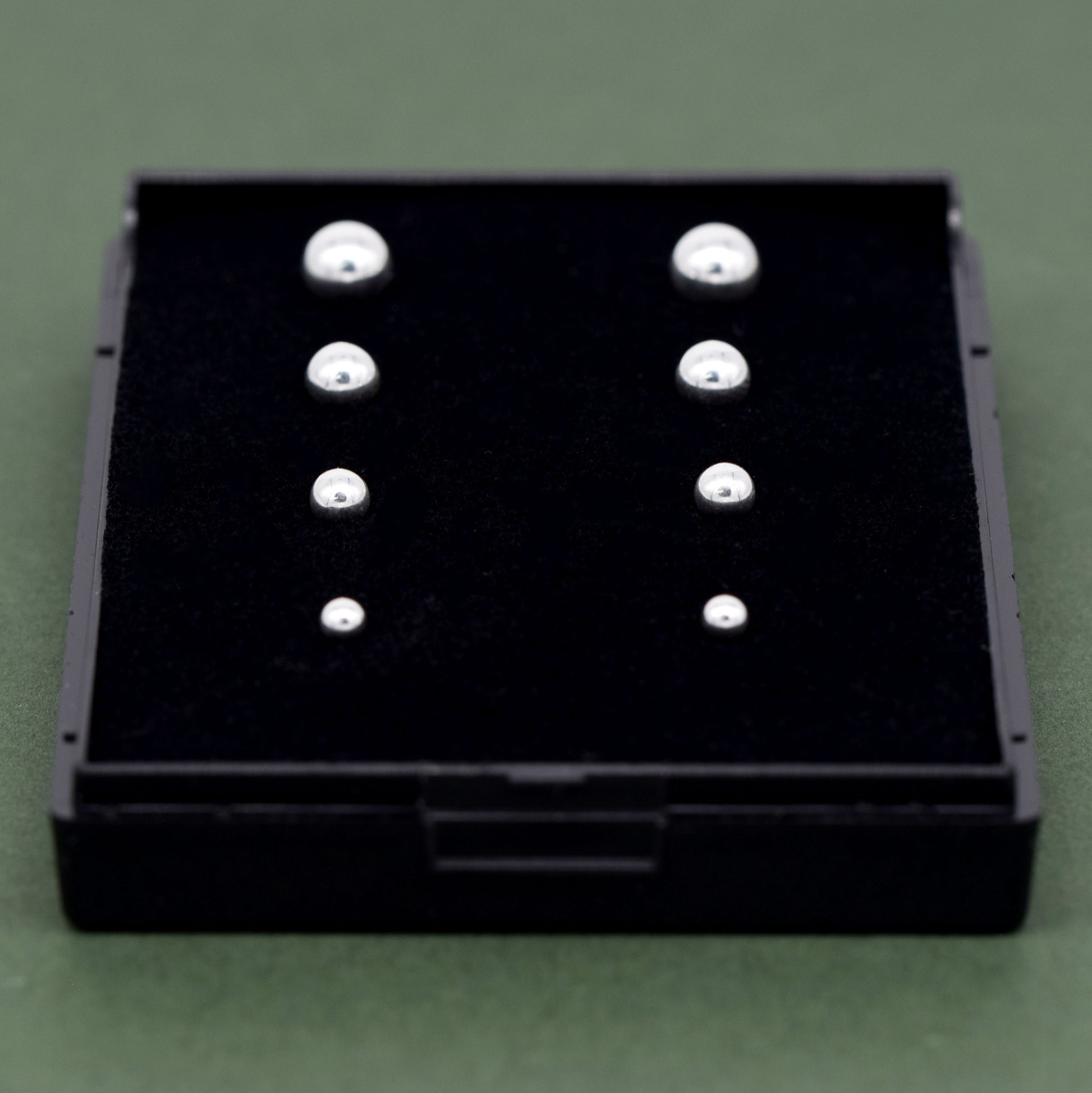 Sterling Silver 3,4,5,6mm Polished Ball Stud Earrings in Gift Box
