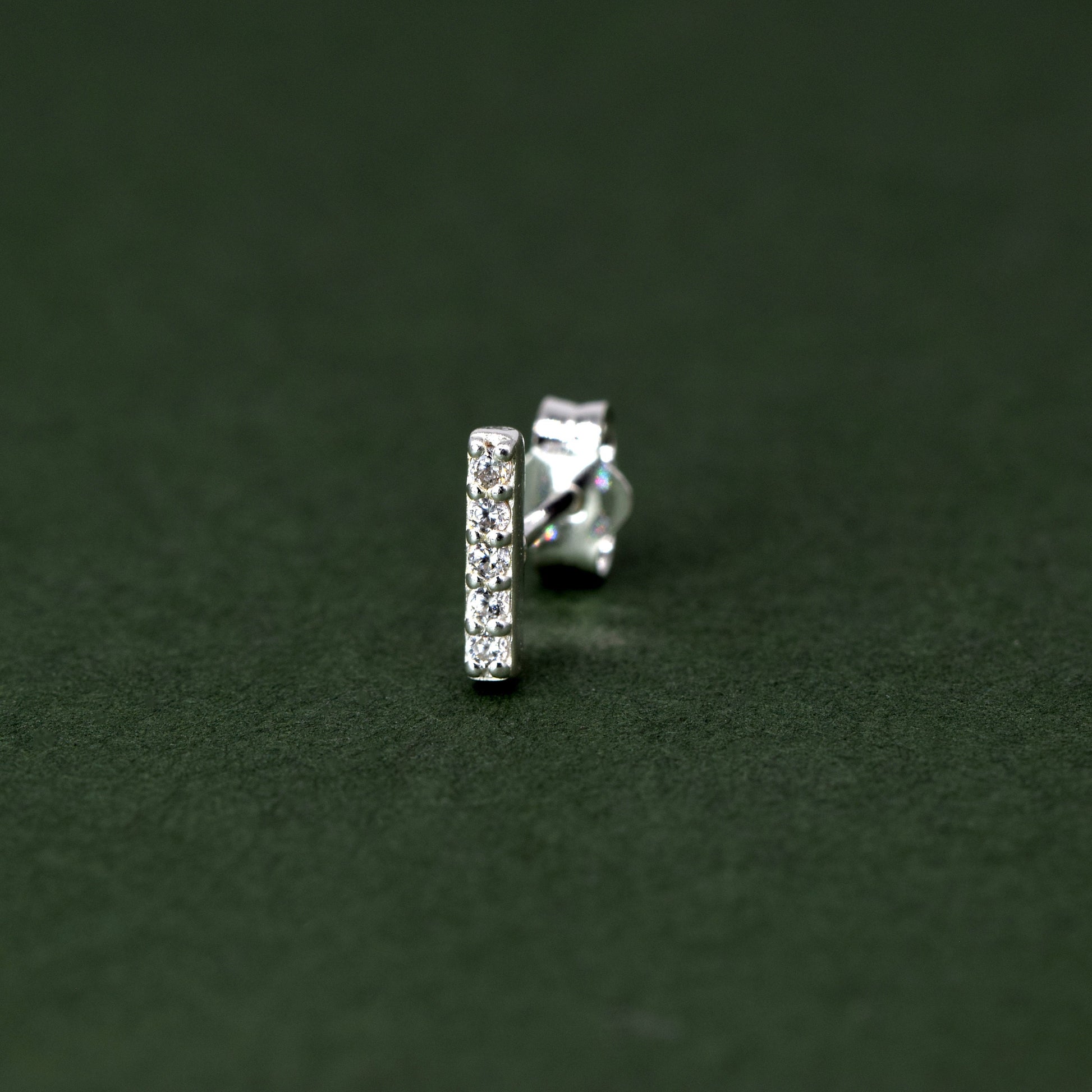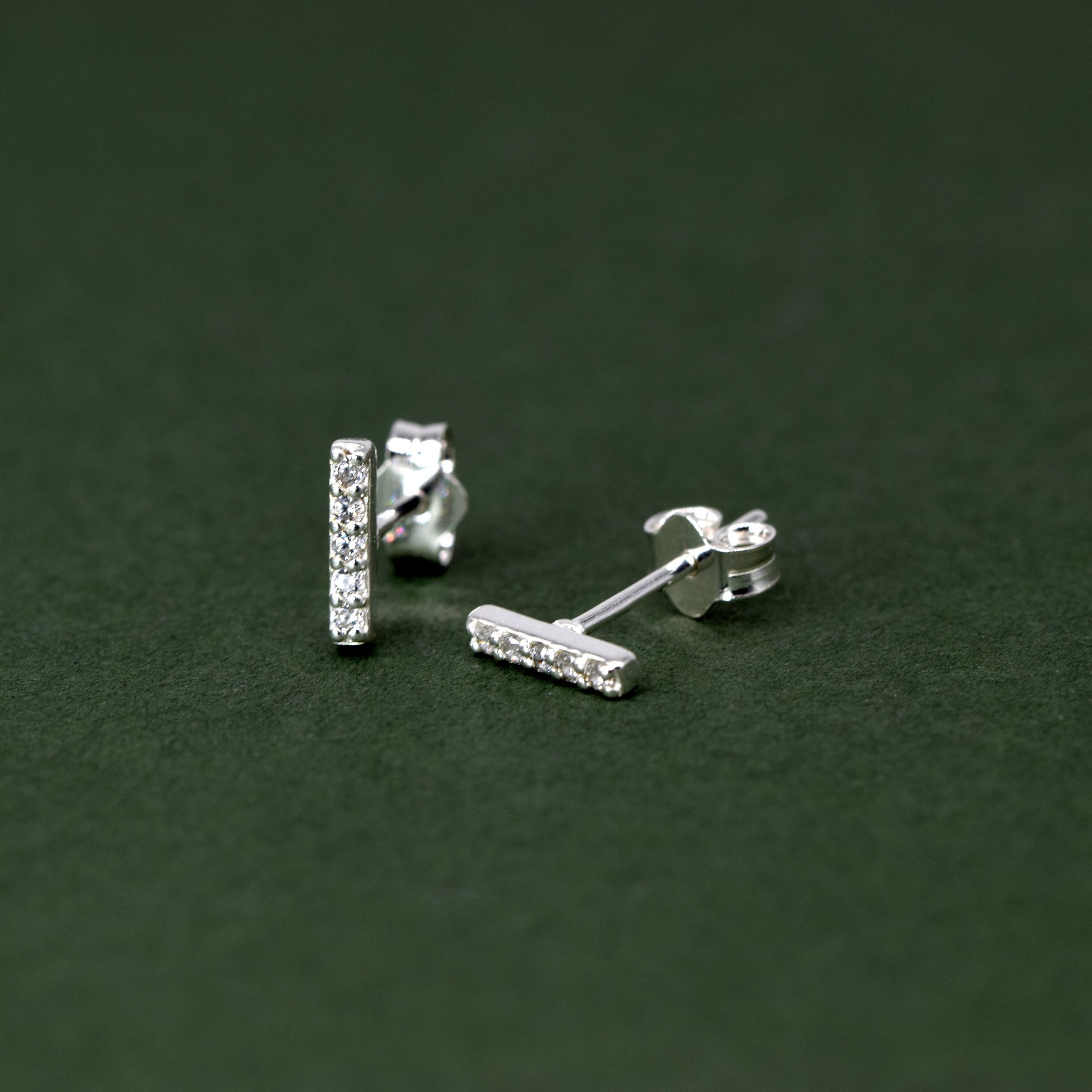 Sterling Silver 7.5mm Cubic Zirconia Bar Stud Earrings (Butterfly Backed)
