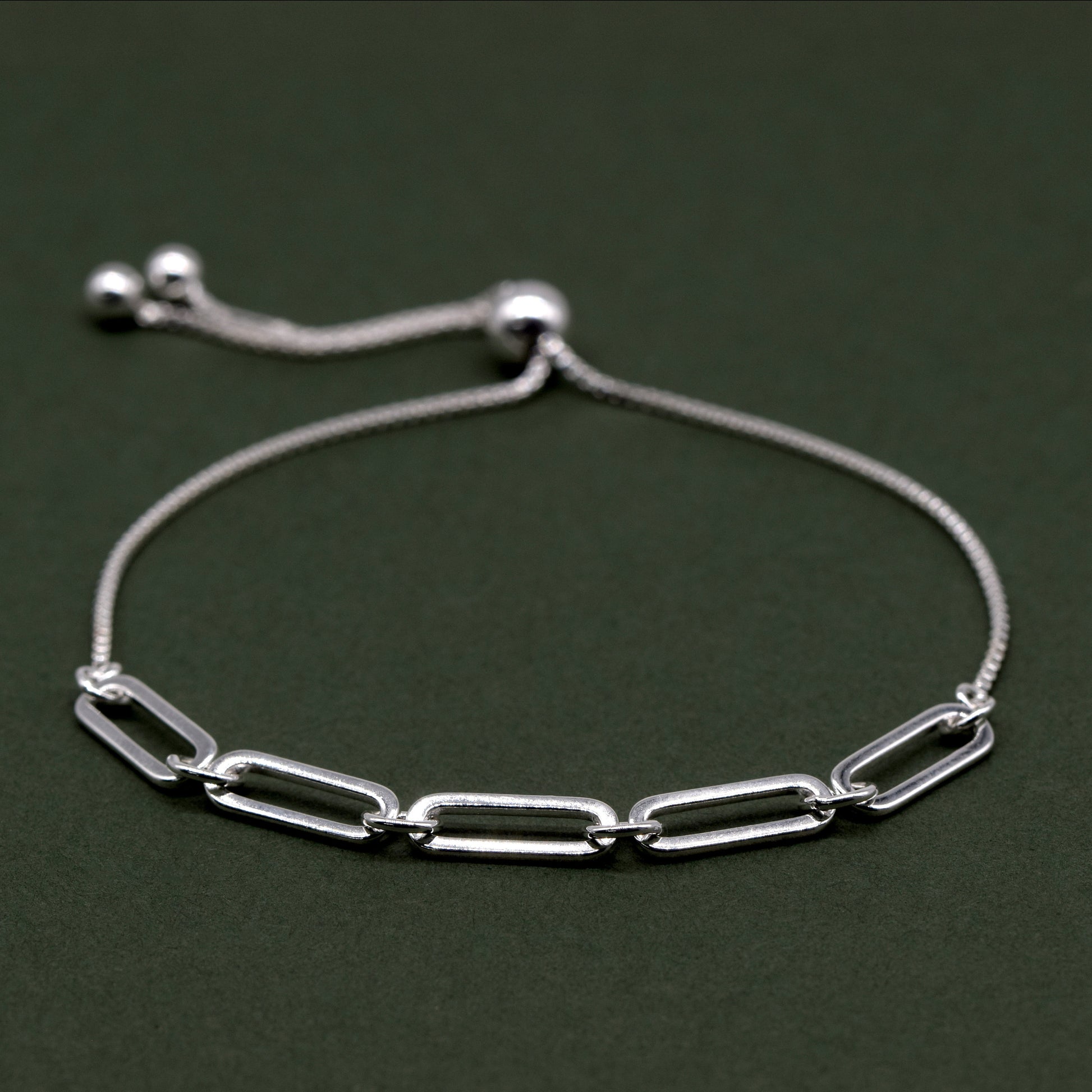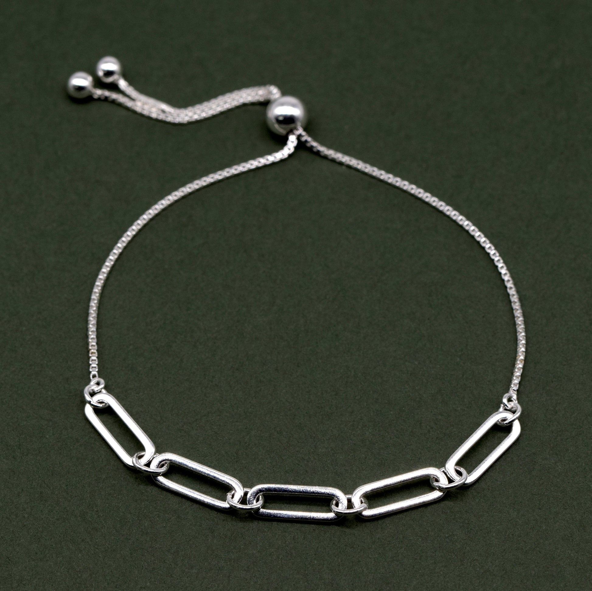Sterling Silver 4.4mm Paperclip Chain Adjustable Slider Bracelet on 1mm Box Chain