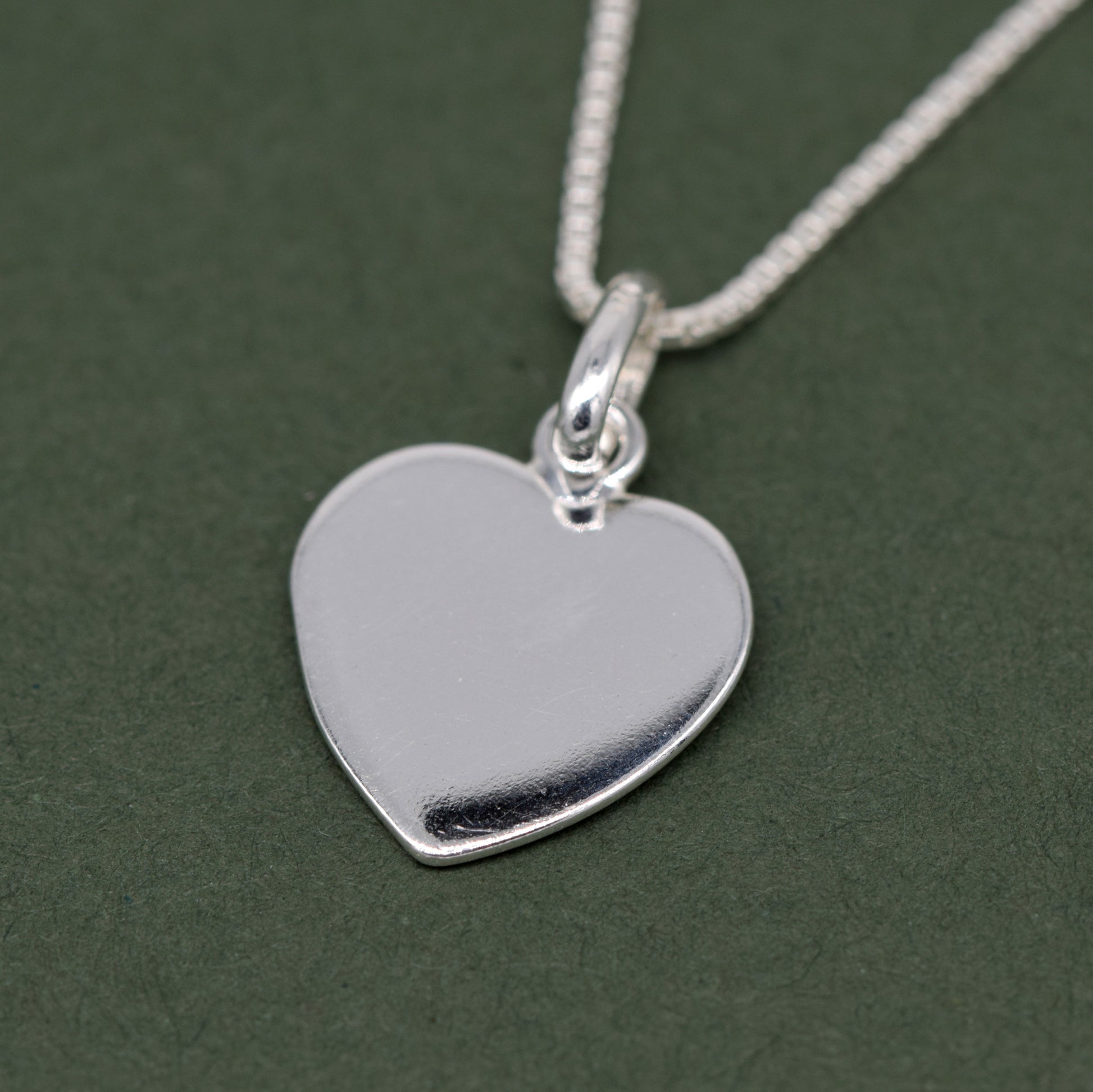 Sterling Silver Flat Heart Pendant Necklace on Box Chain