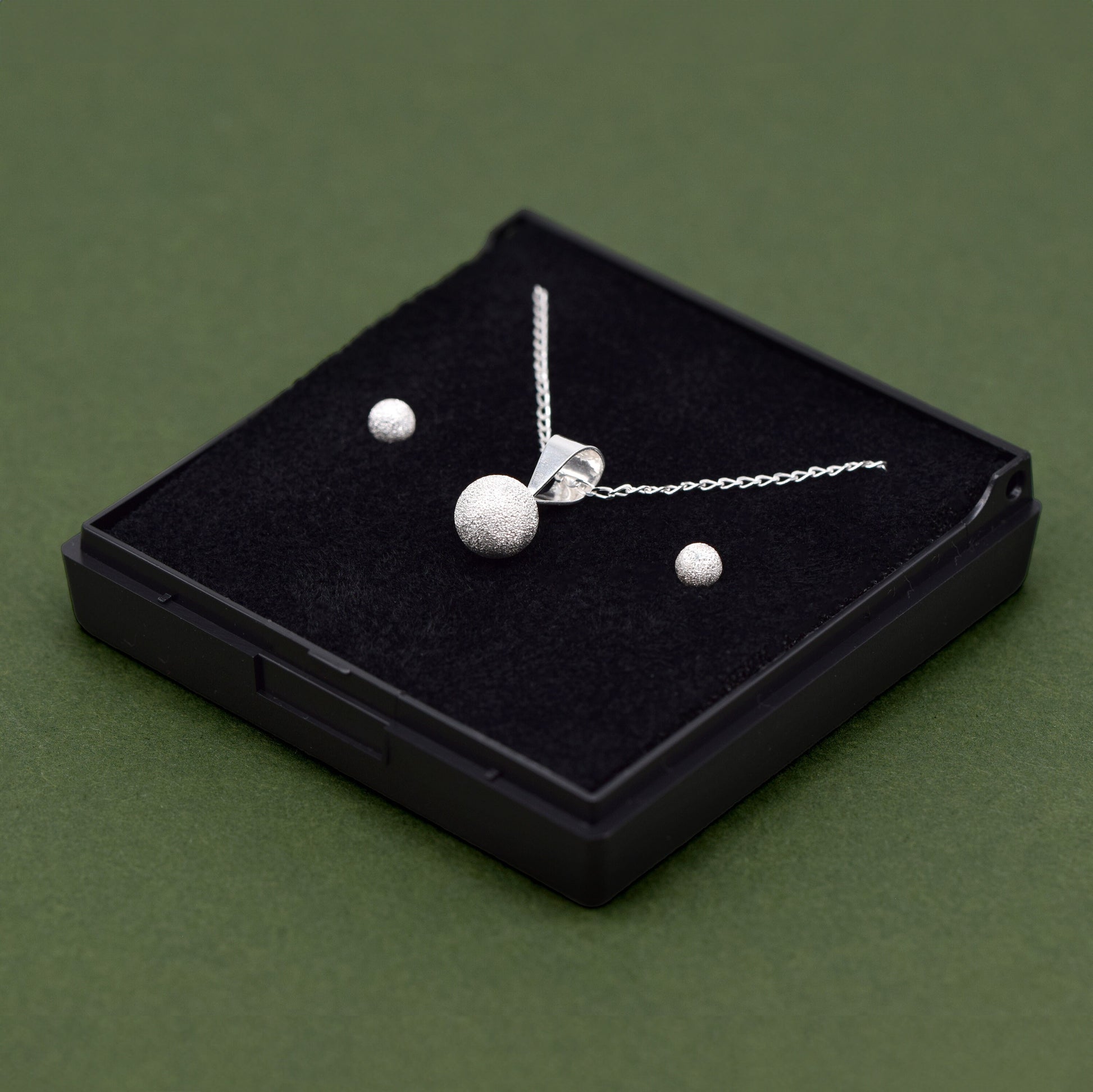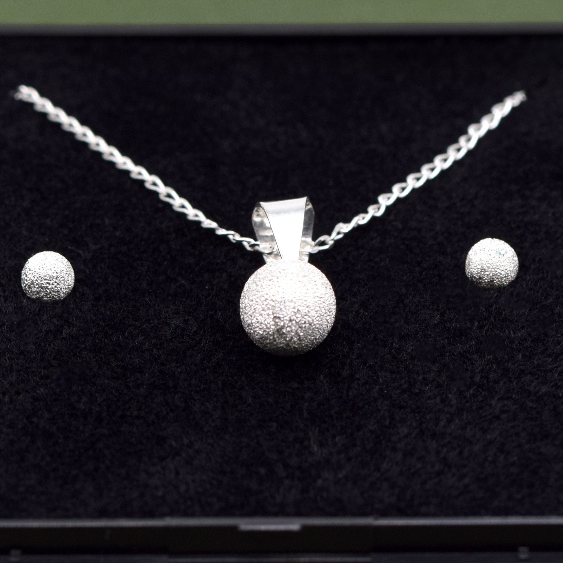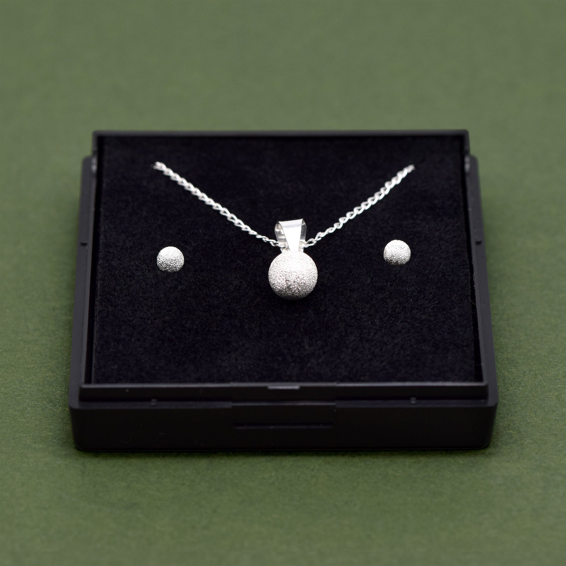 Sterling Silver Frosted Pendant 14"-24" Necklace & 3/4mm Frosted Studs In Gift Box