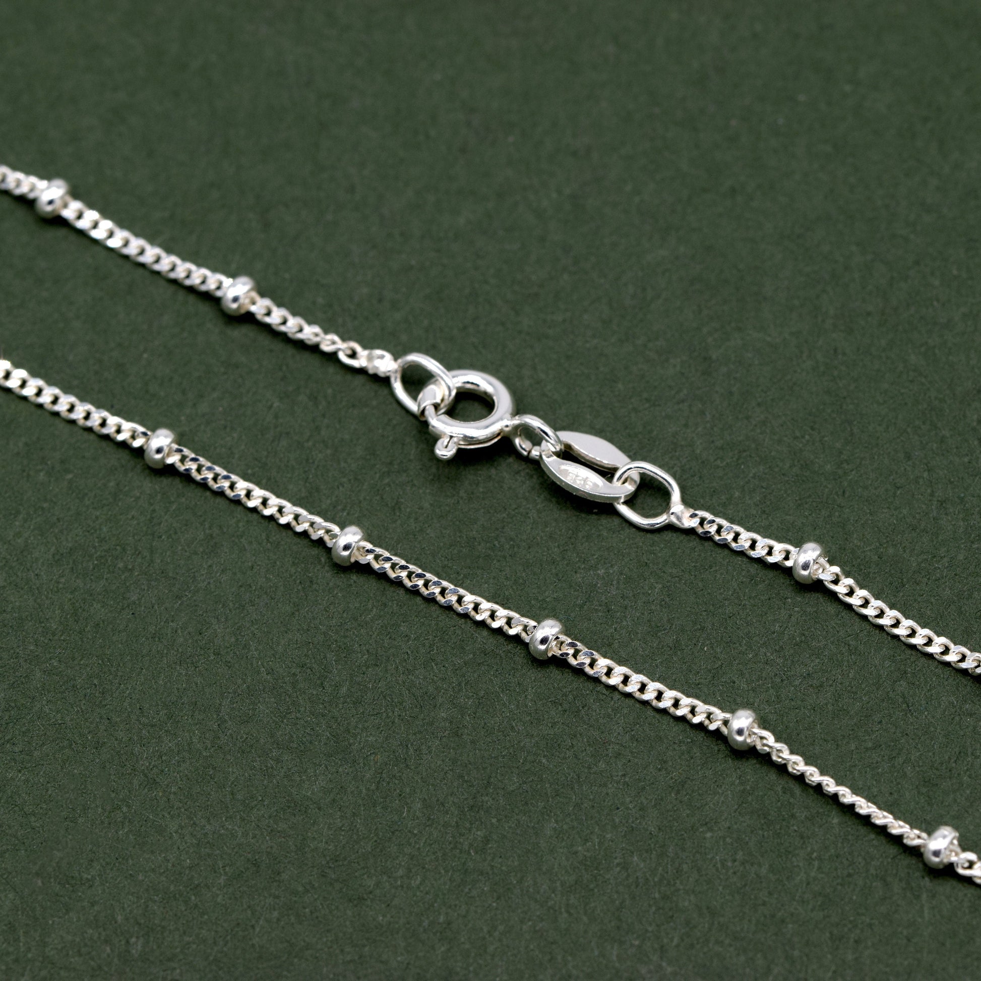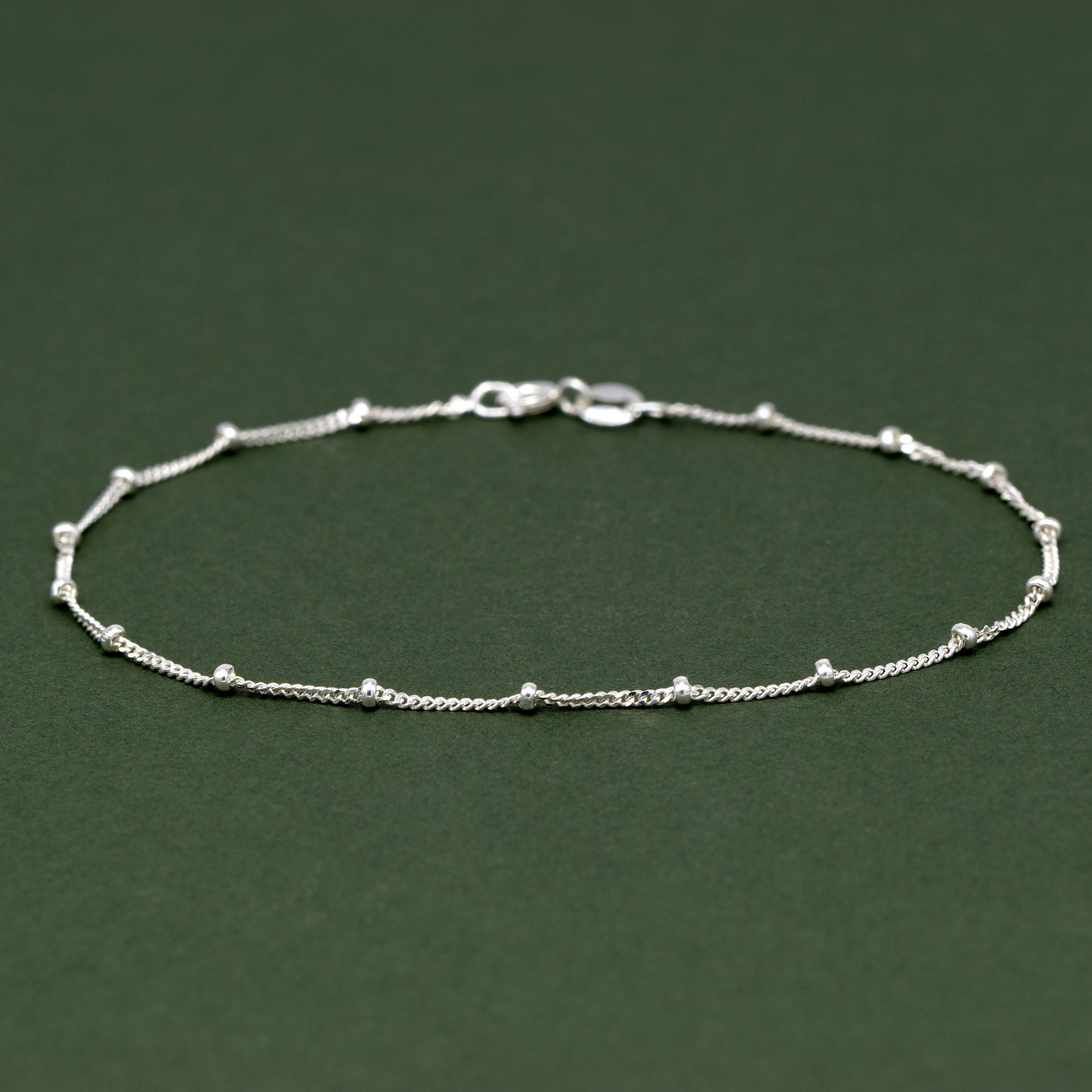 Sterling Silver 1.2mm Satellite Ball Beaded Curb Chain Anklet