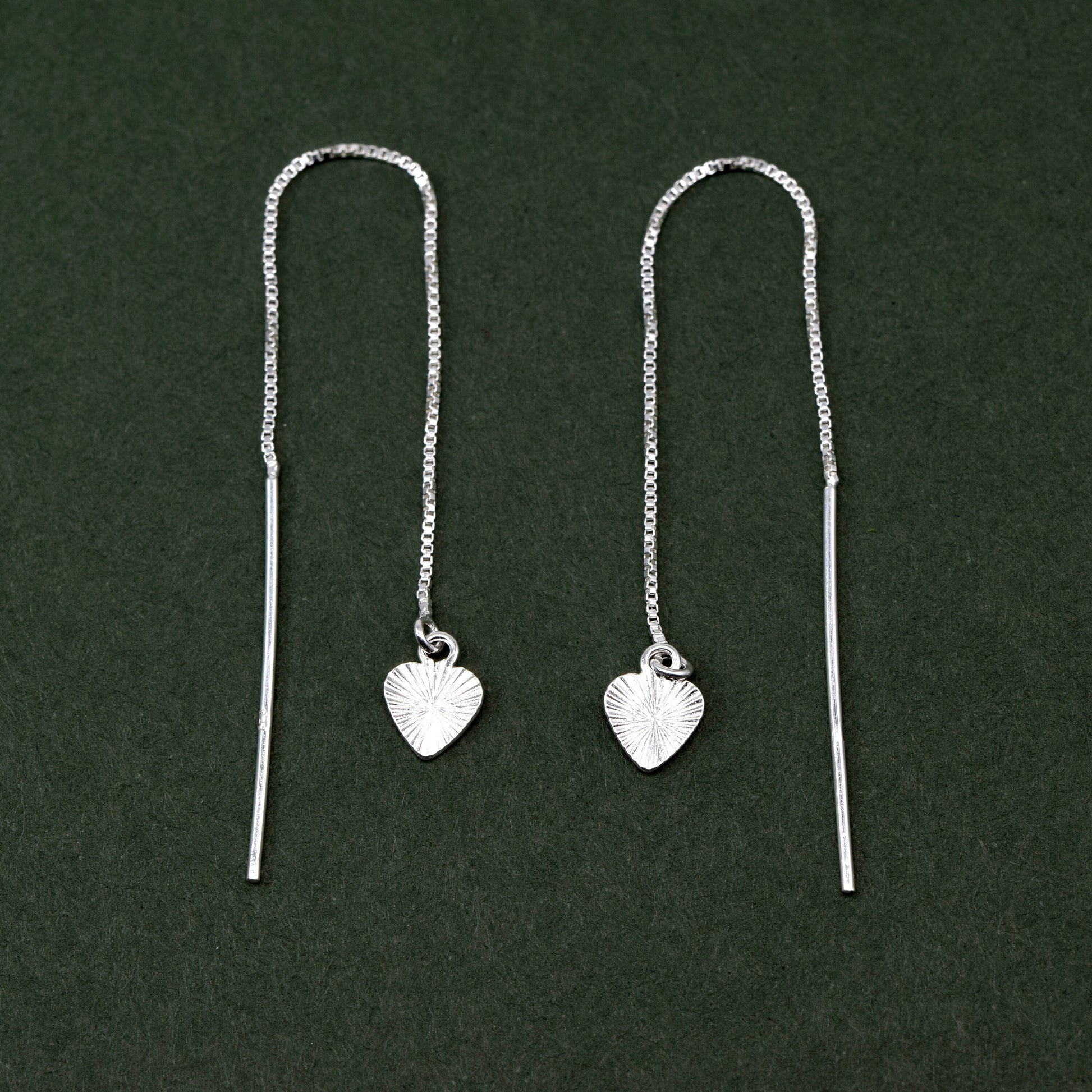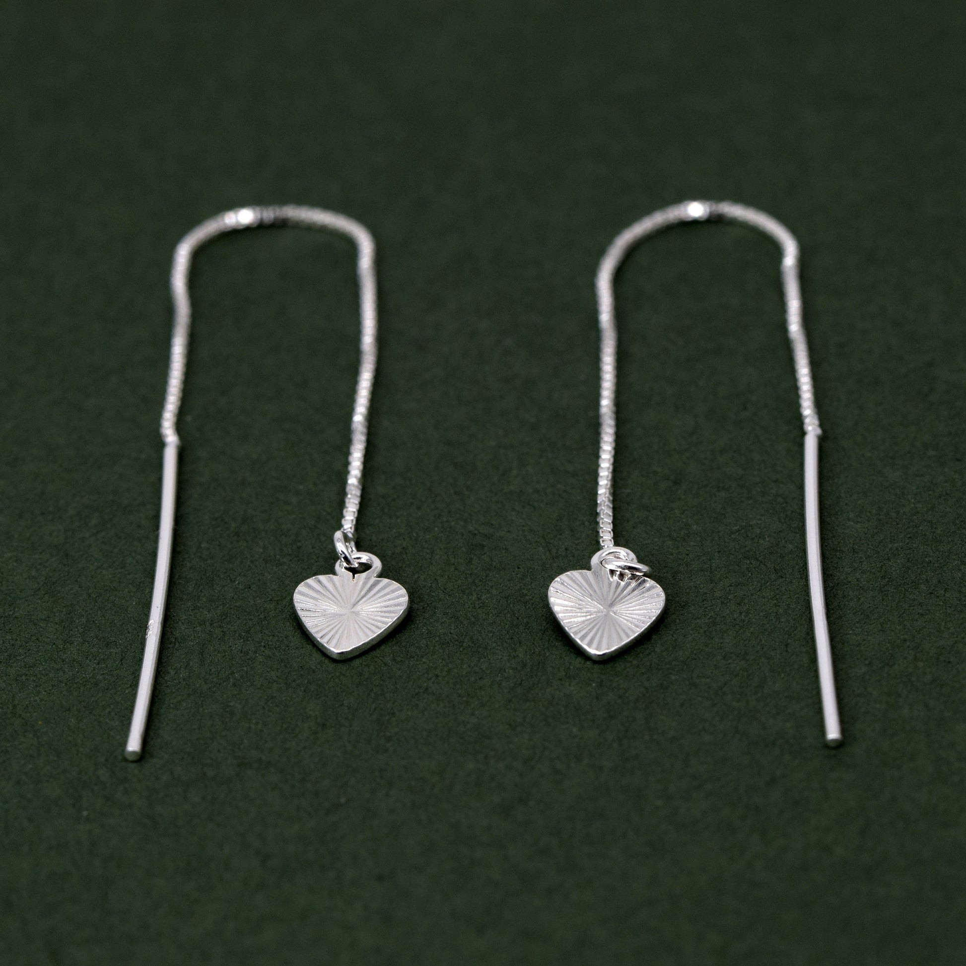 Sterling Silver Thread Through/Dropper Fluted/Diamond Cut Heart Dropper Earring