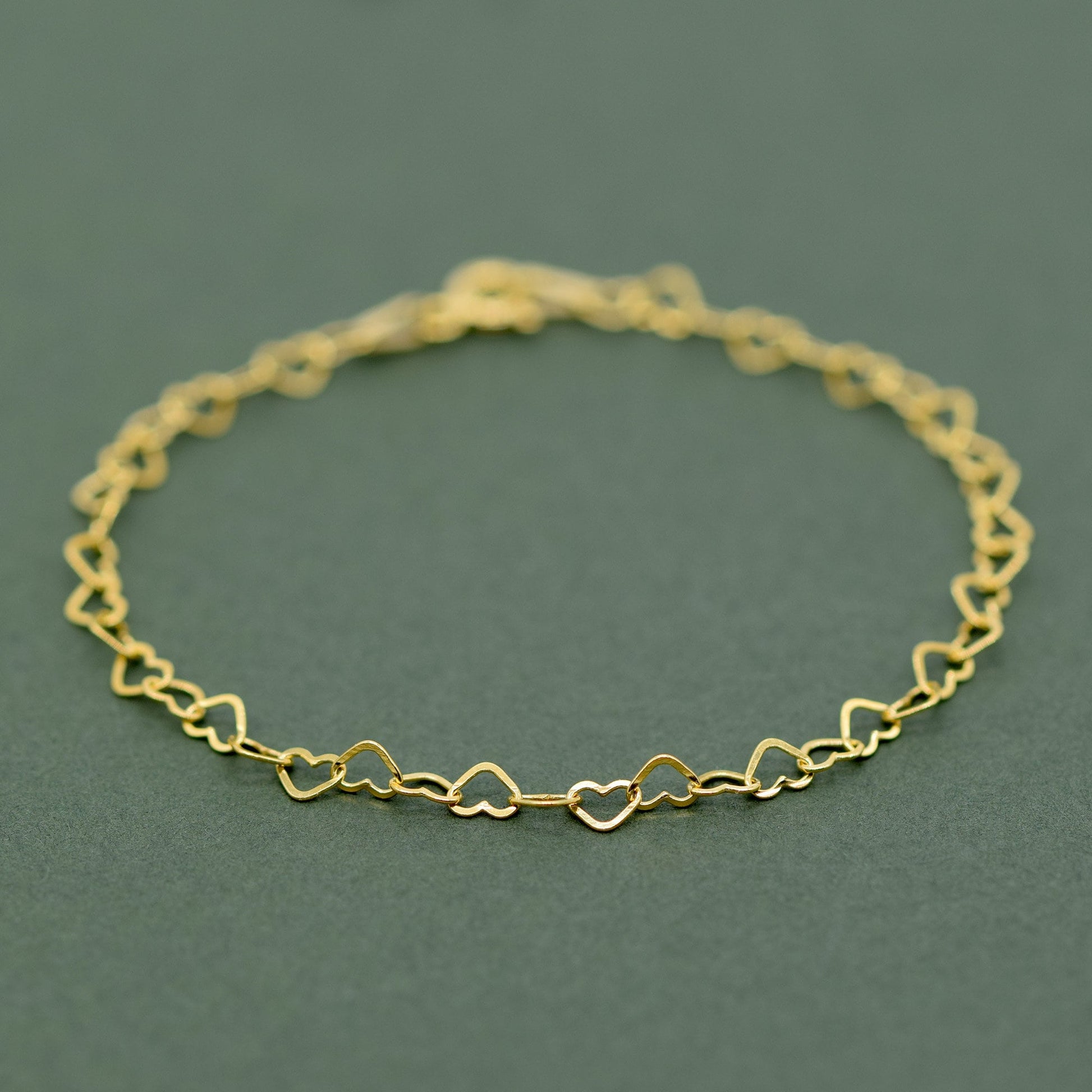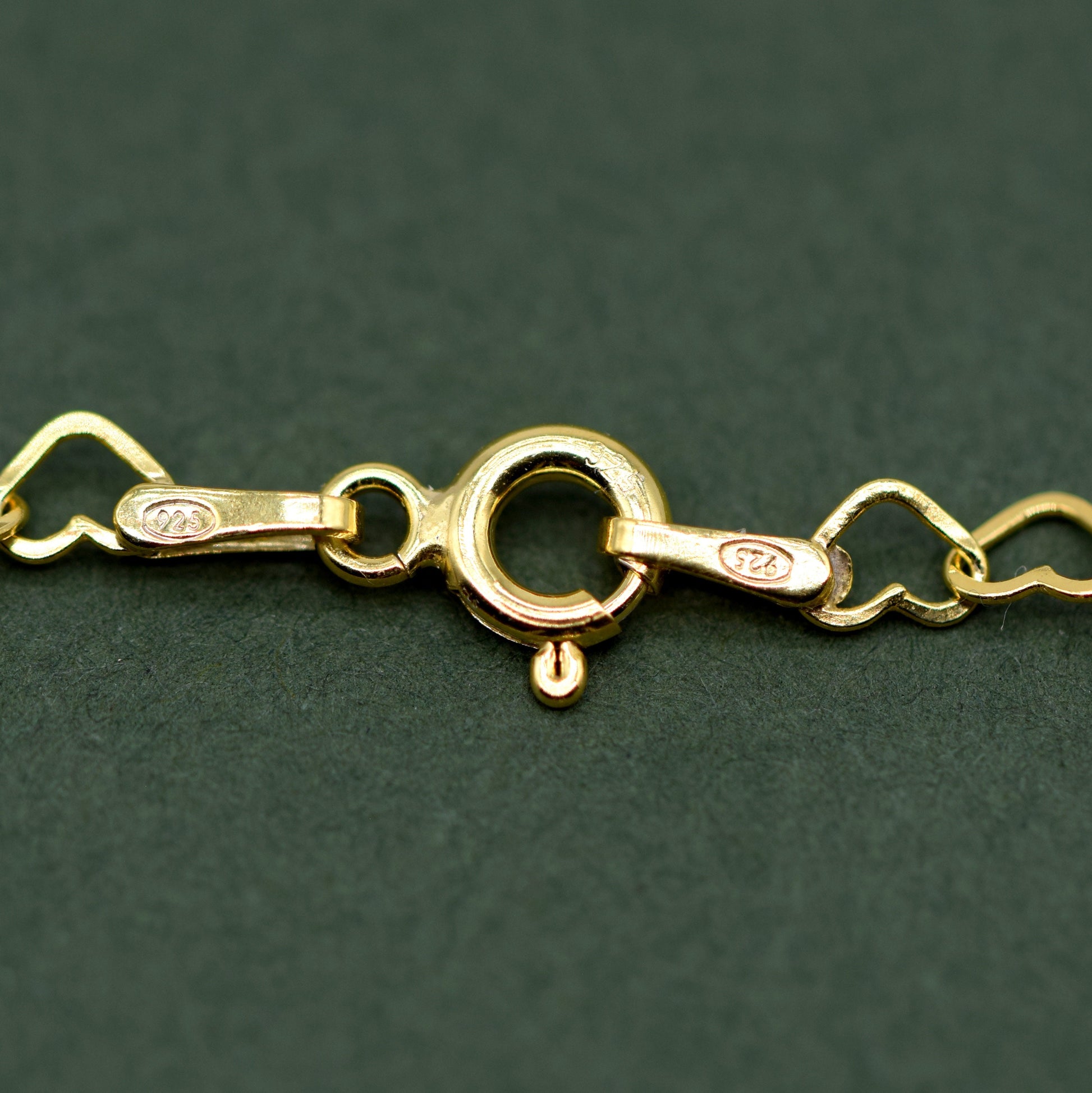 Gold Plated Sterling Silver 3mm Heart Chain Bracelet
