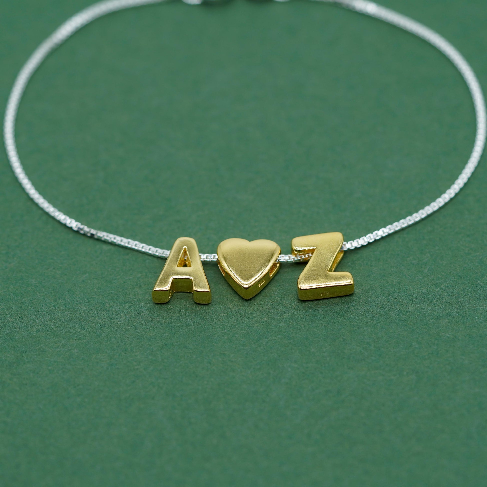 Gold Vermeil Sterling Silver Letter on Sterling Silver Box Bracelet
