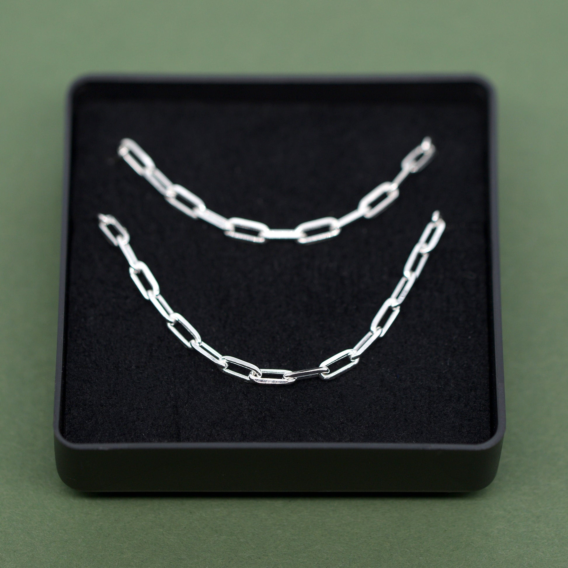 Sterling Silver 2.7mm Paperclip Chain Bracelet and Necklace Matching Set in Gift Box