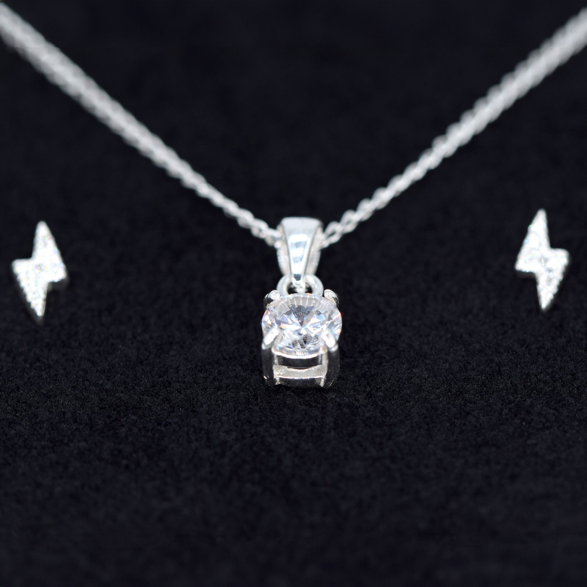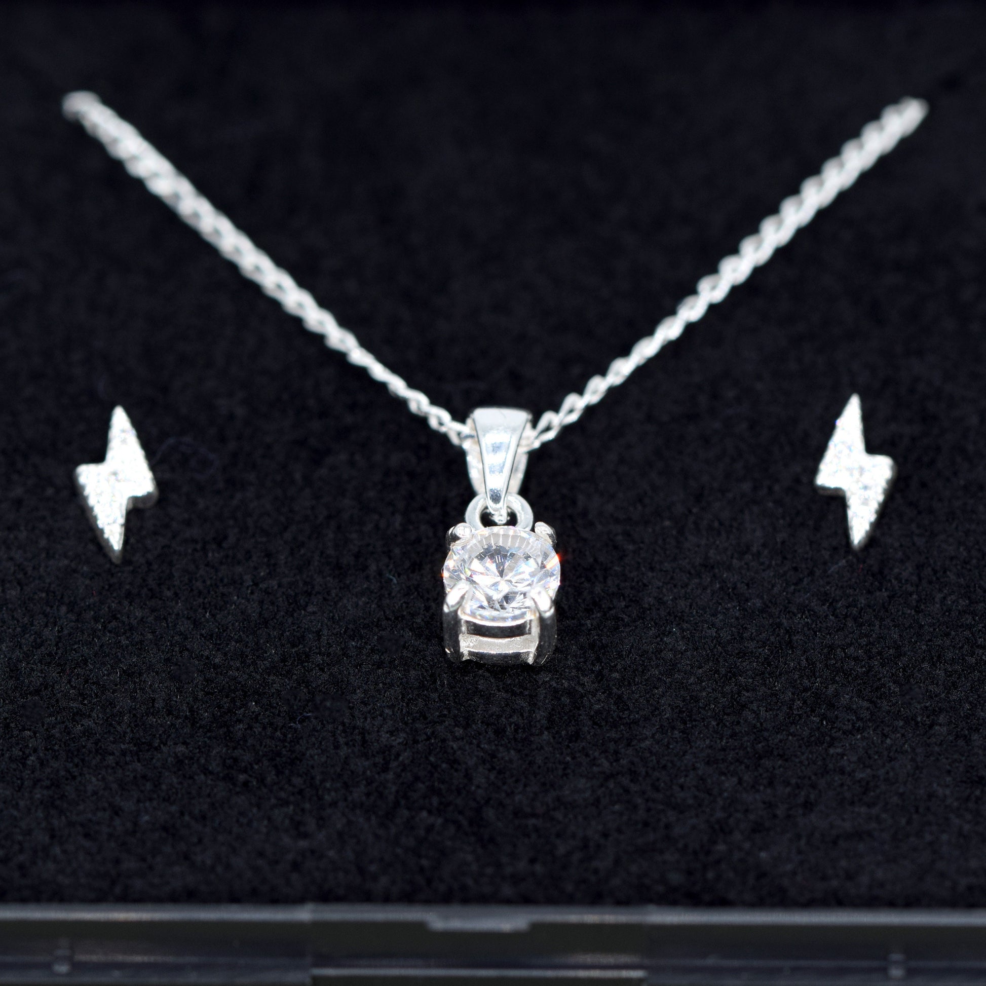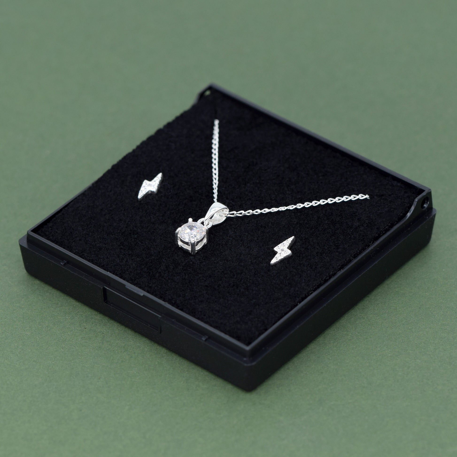 Sterling Silver Cubic Zircona Necklace & Bolt Earrings Gift Set