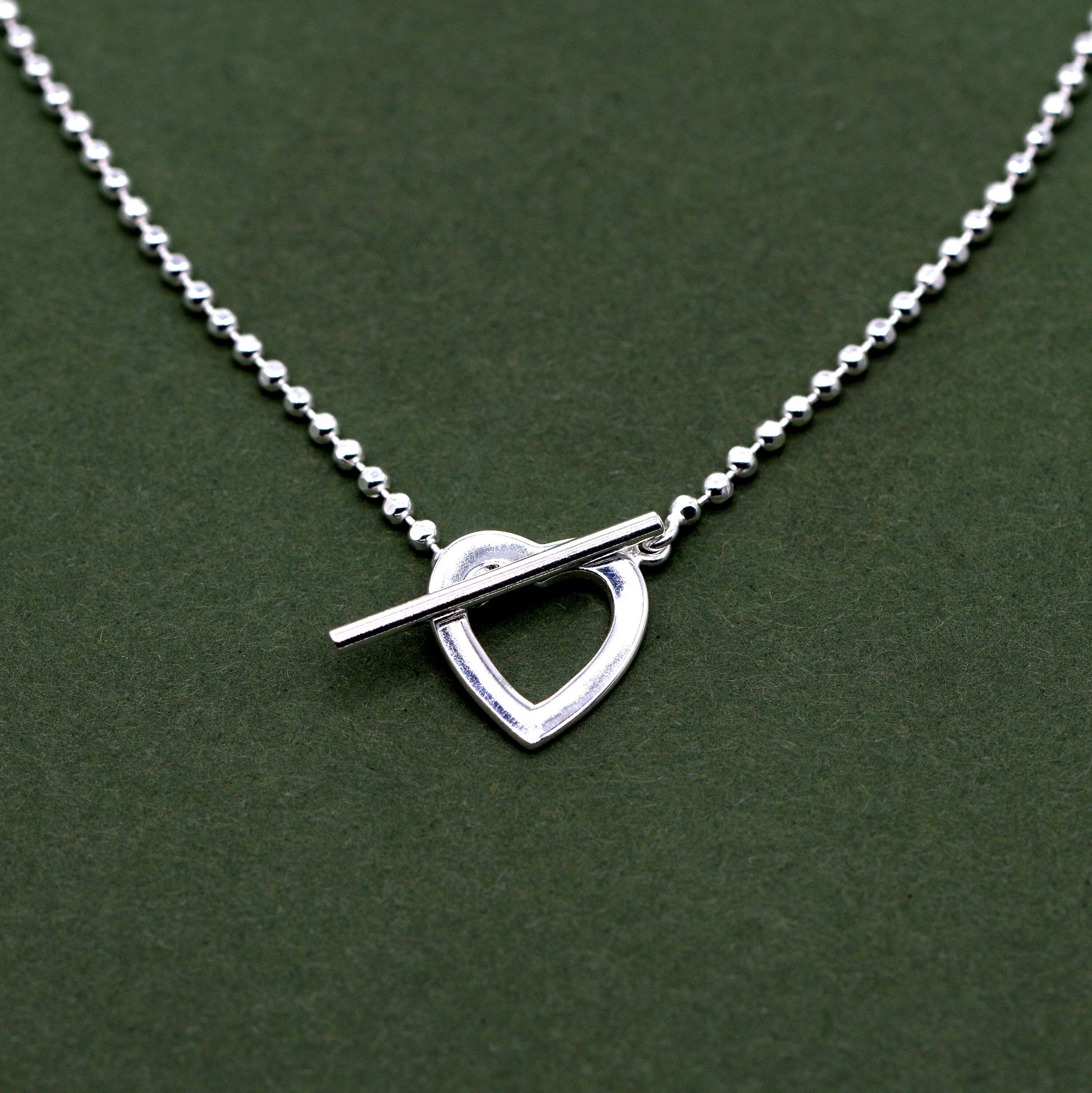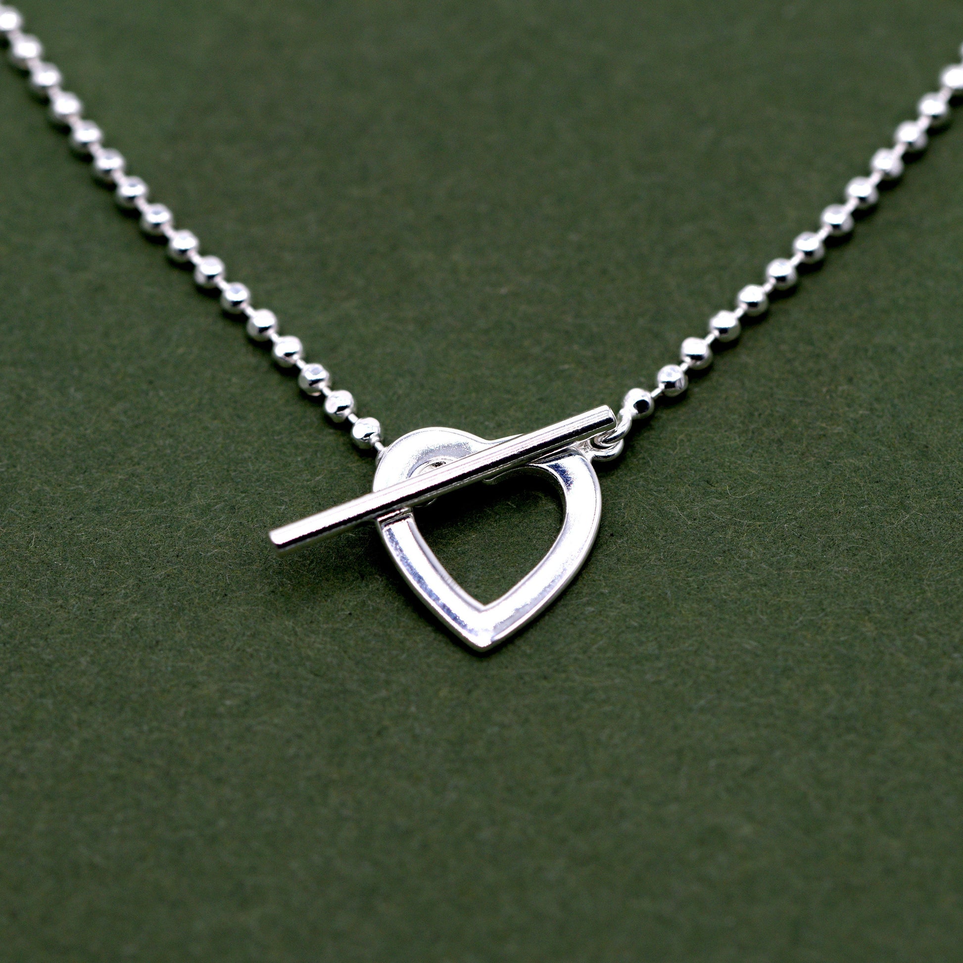 Sterling Silver 16" Heart and T-Bar Necklace