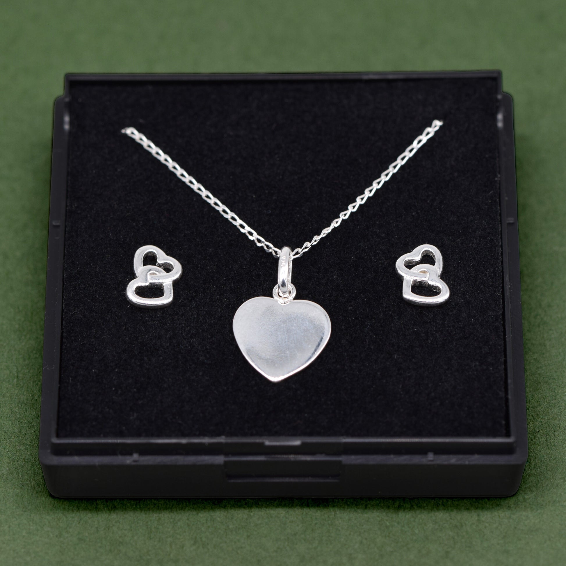 Sterling Silver Heart Necklace & Earrings Gift Set