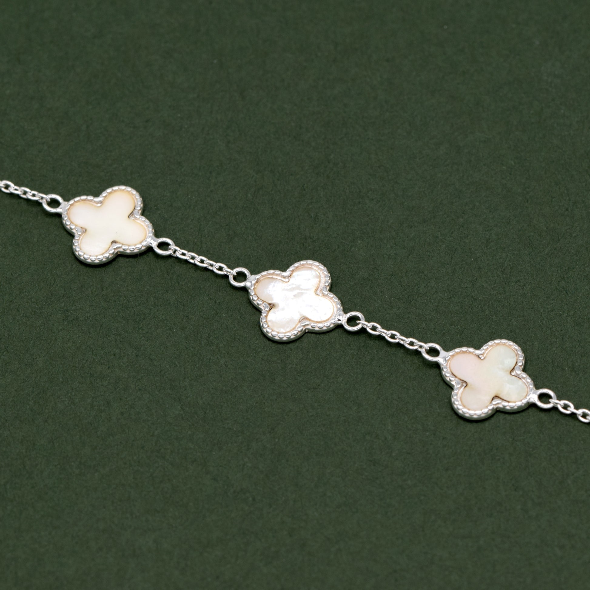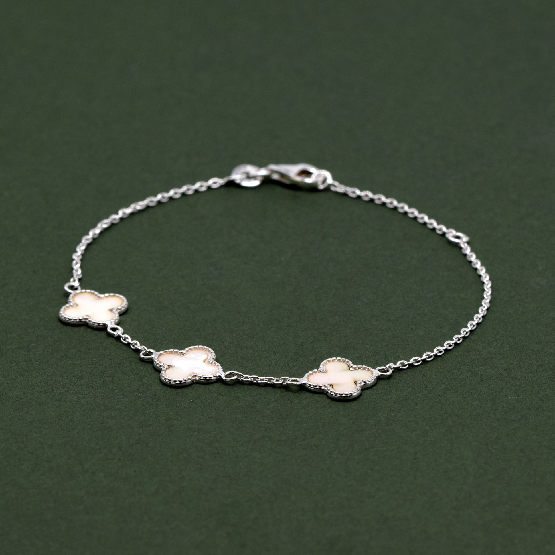 Sterling Silver Triple Four Leaf Clover Motif Bracelet