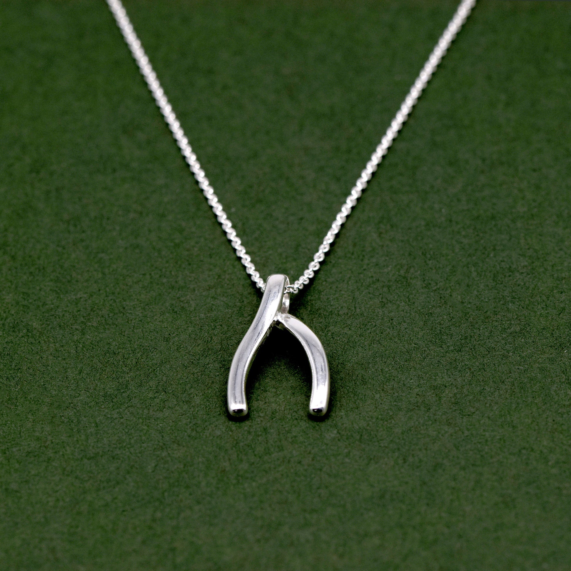925 Sterling Silver 20mm Wishbone Pendant on 18" Rolo Chain